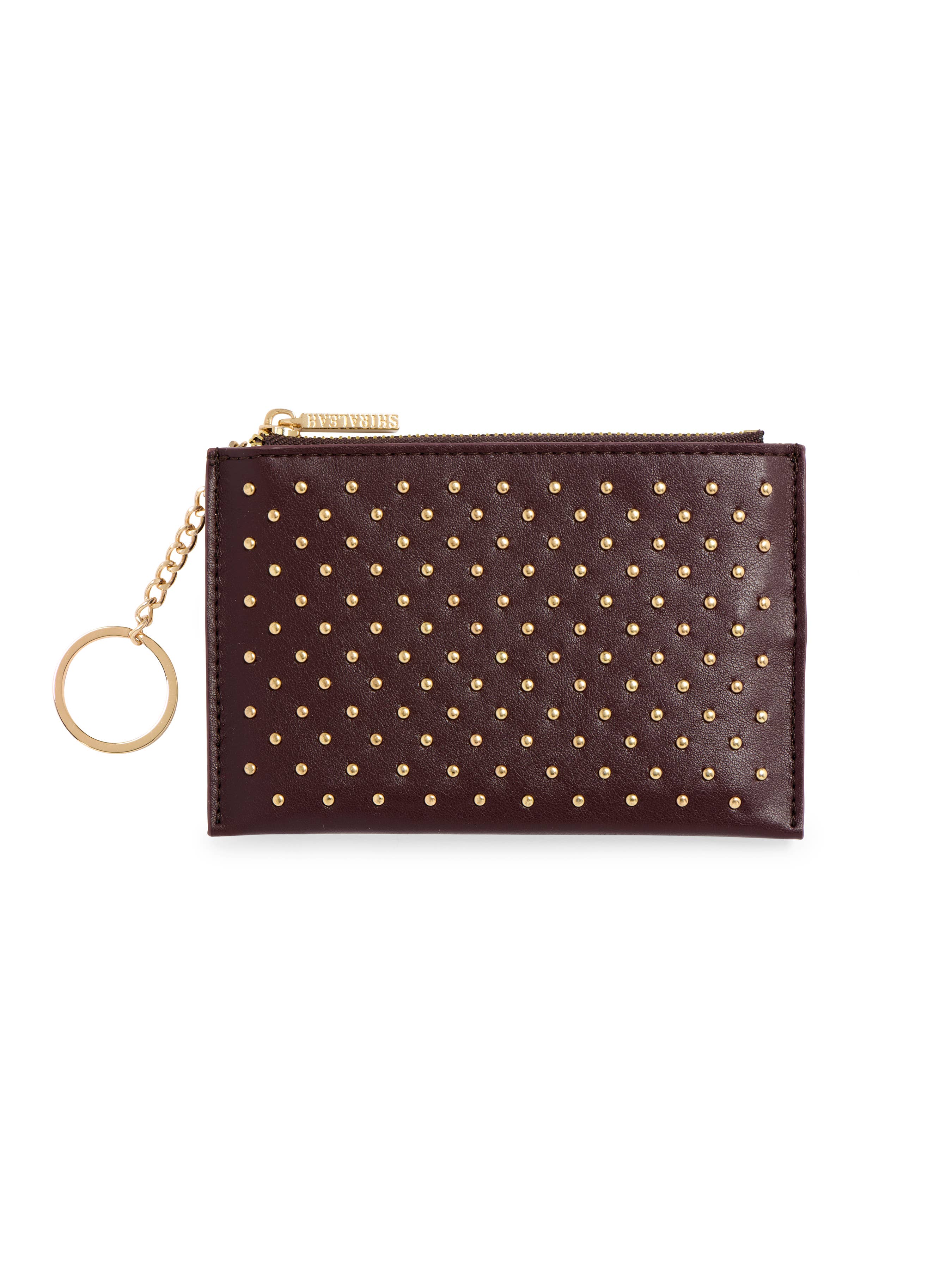 Edgy meets everyday with the Roxy Card Case by Shiraleah. Designed to keep your essentials secure without slowing you down, this compact case features multiple card slots, a clear ID window, and a zip-top closure for coins or small must-haves. Finished with mini stud detailing, it adds a subtle rock-chic twist to a sleek, streamlined silhouette.