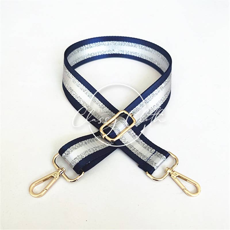 Turn up the volume on your everyday style with the Vertical Navy Silver White Stripe . Designed to make a statement, this eye-catching strap adds instant personality to any bag while delivering all-day comfort and durability.