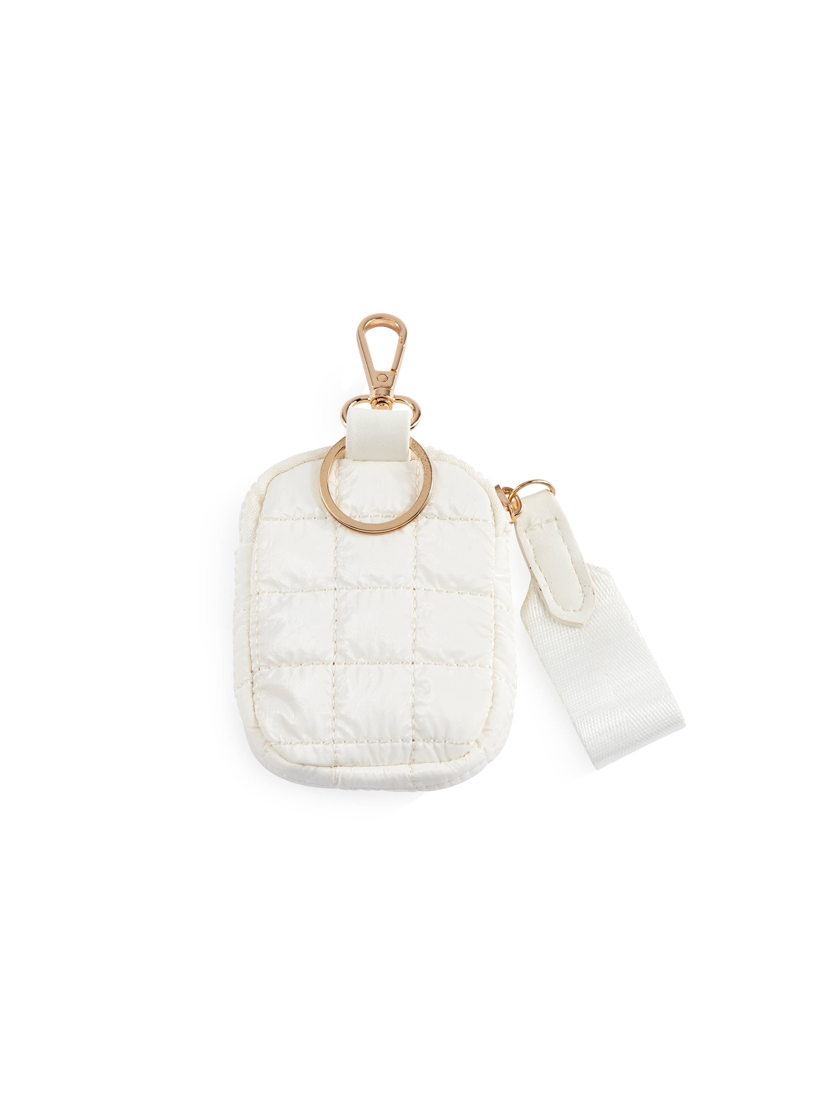 Small but mighty, the Logan Clip-On Pouch is your new go-to for chic, hands-free storage. Crafted from shiny quilted nylon in luxe metallic shades—gold, silver, rose, and pearl—this compact pouch keeps your essentials stylishly secure. Featuring a sturdy key ring and clasp hook, it easily attaches to your favorite bag or belt loop. With a top zip closure and gold hardware details, the Logan is perfect for stashing keys, earbuds, lip balm, or cards while on the move. A practical yet trendy solution for life on the go.