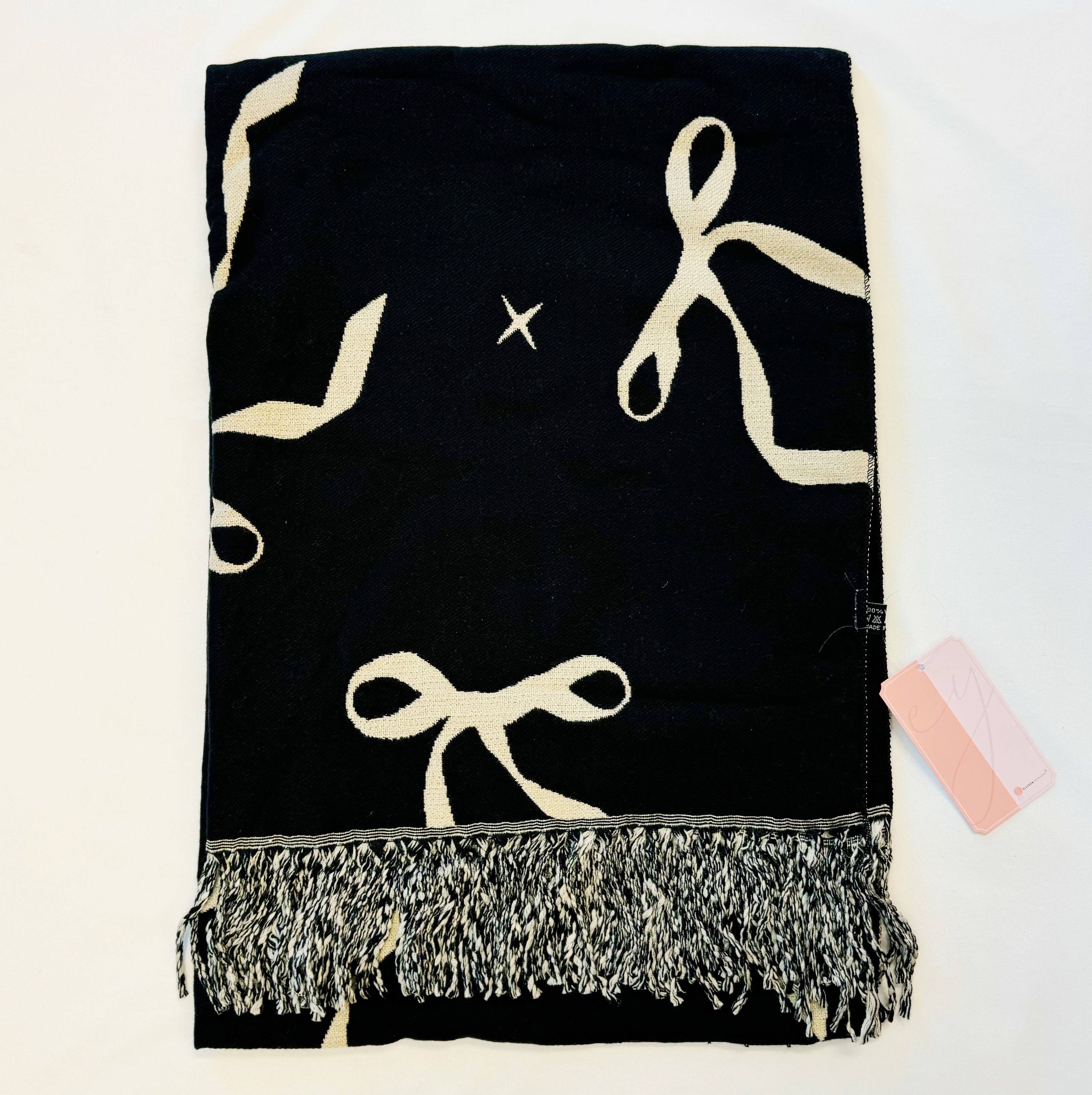 Experience the perfect blend of sophistication and effortless style with our Ballerina Bow Fringed Scarf. Designed with a subtle, elegant bow pattern and finished with soft fringe detailing, this lightweight scarf adds a refined touch to any outfit. Its airy feel and generous size make it ideal for layering year-round, whether styled casually or dressed up for special occasions.