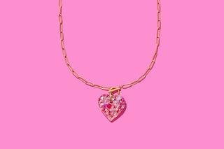 Paperclip Chain Necklace – Pink Confetti Heart Pendant – 18K Gold Plated Stainless Steel
