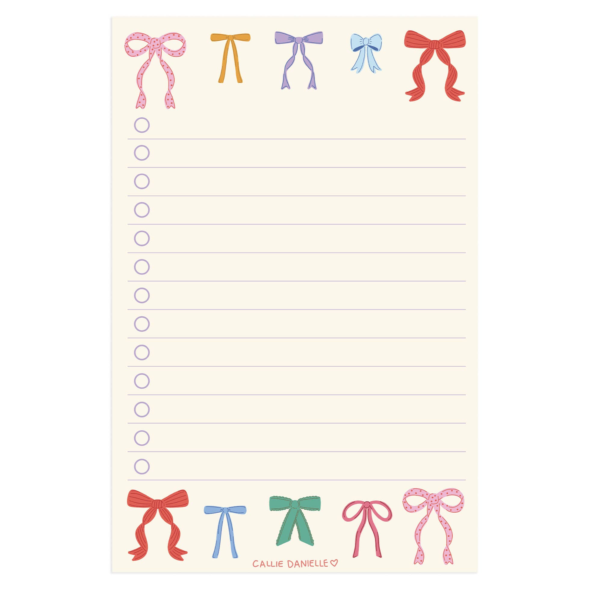 Stay stylishly organized with the Coquette Bows Notepad! This charming notepad features hand-drawn bows in a delicate pastel palette, adding a touch of elegance to your everyday tasks. Perfect for jotting down to-do lists, grocery runs, study notes, or planning your week with ease. Its whimsical design makes it a must-have for stationery lovers and a thoughtful gift for friends, coworkers, teachers, or anyone who appreciates cute and functional desk accessories. Whether you’re tackling errands or penning sweet reminders, this notepad is as practical as it is pretty!