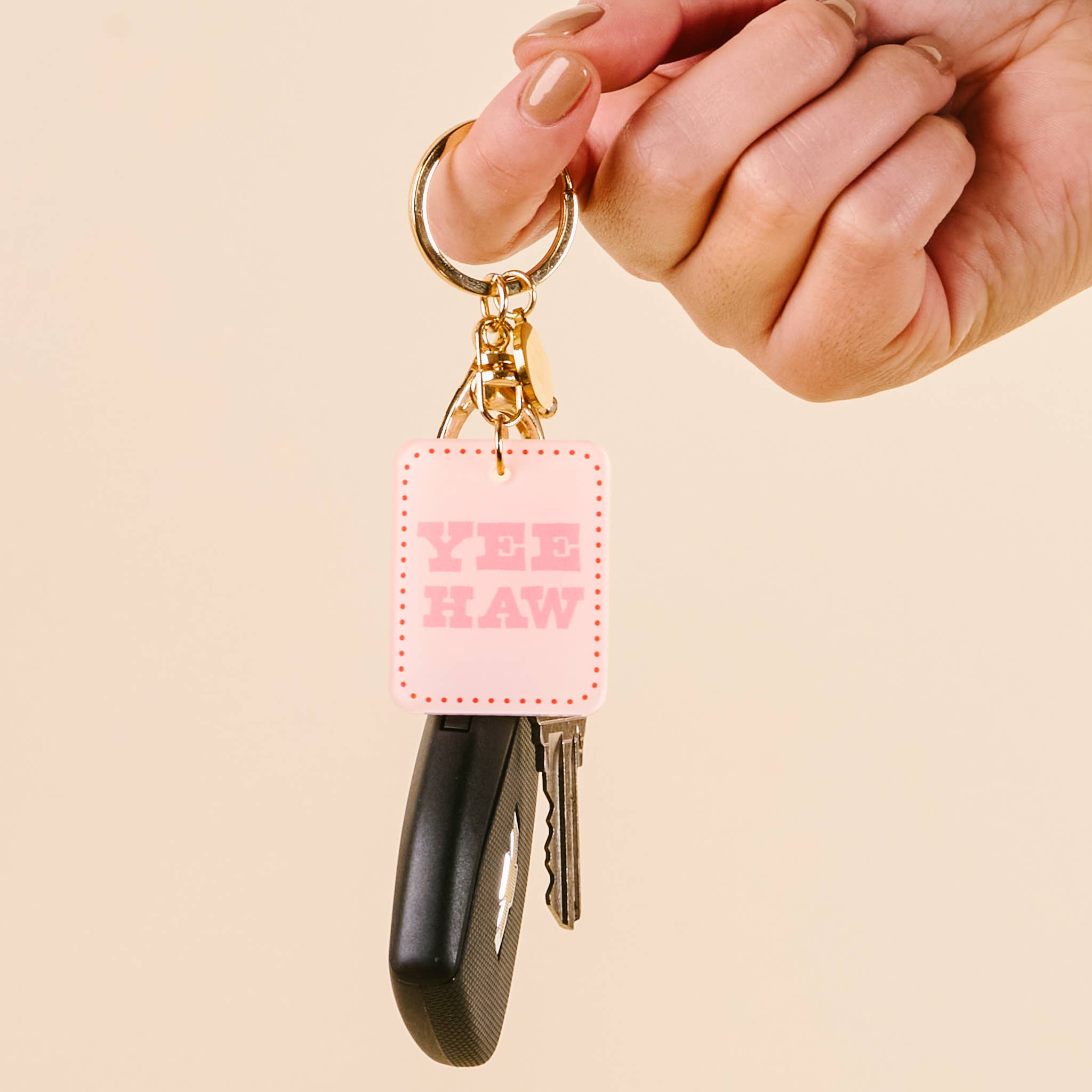 Express yourself with our Acrylic Keychains—mini statements of style and fun! Featuring playful, personable phrases, these keychains are perfect for adding a little flair to your keys, bags, or backpacks. Crafted from lightweight, durable acrylic and finished with gold hardware and our signature logo charm, they’re as chic as they are functional. These keychains are the cutest pocket-sized accessory to showcase your unique vibe!