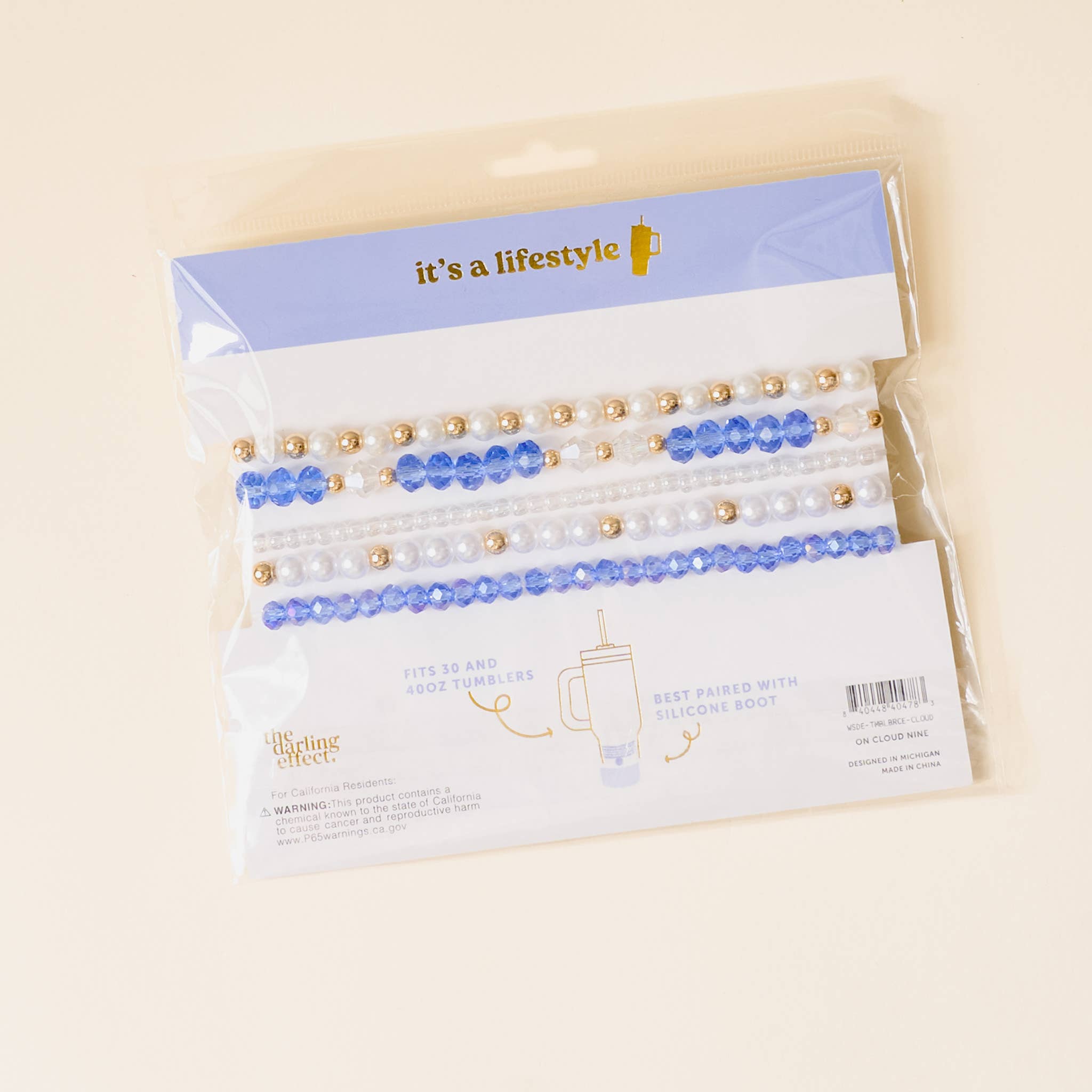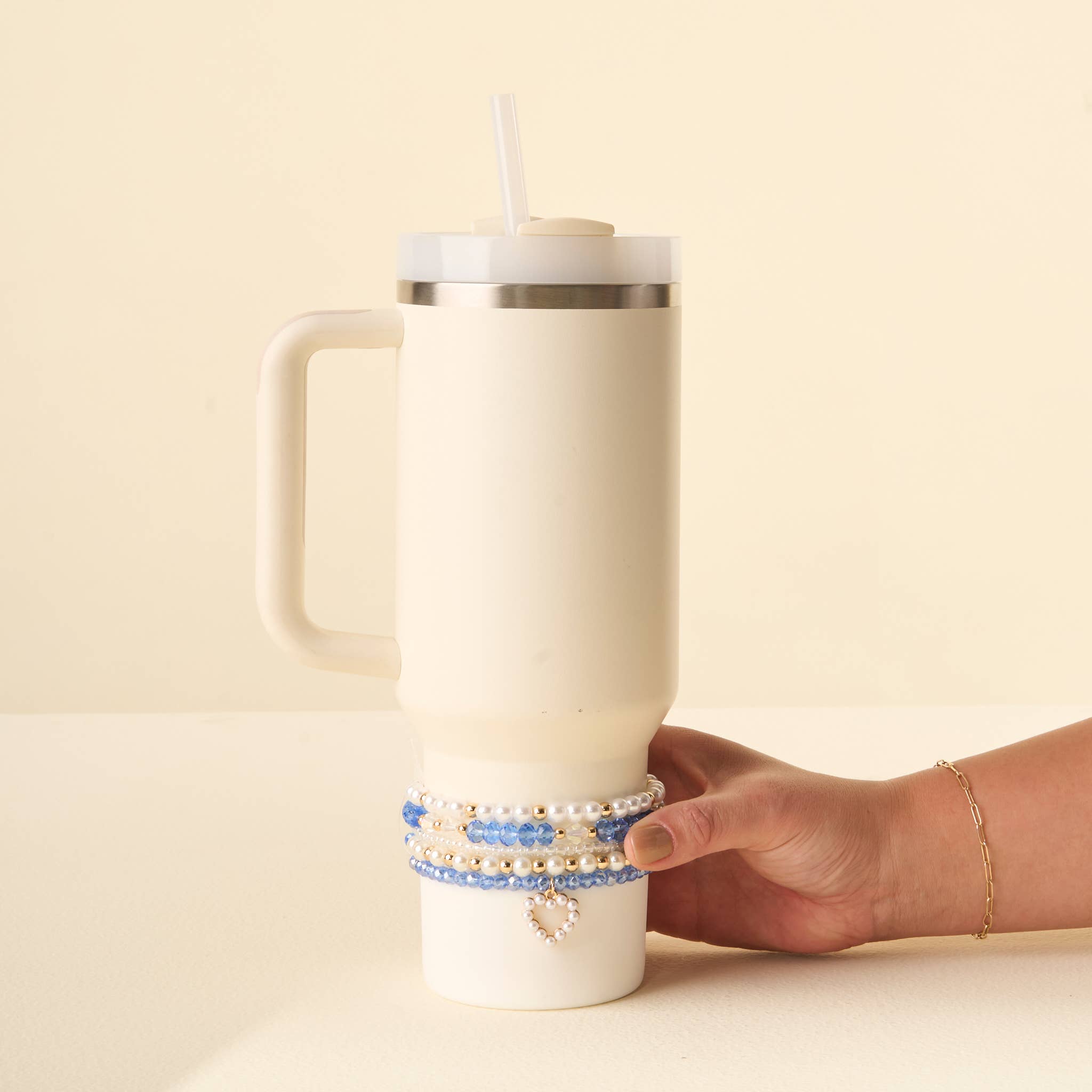Add charm and personality to your tumbler with our tumbler bracelet stack. This set includes 5 unique bracelets that fit all standard 40 oz tumblers. Pair with a tumbler boot to keep your bracelets secure and prevent slipping. Perfect for personalizing your tumbler and making it uniquely yours, while also offering quick identification and a fun accessory.